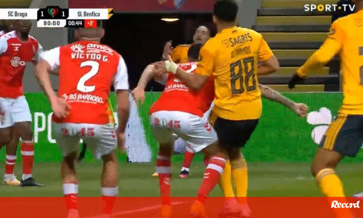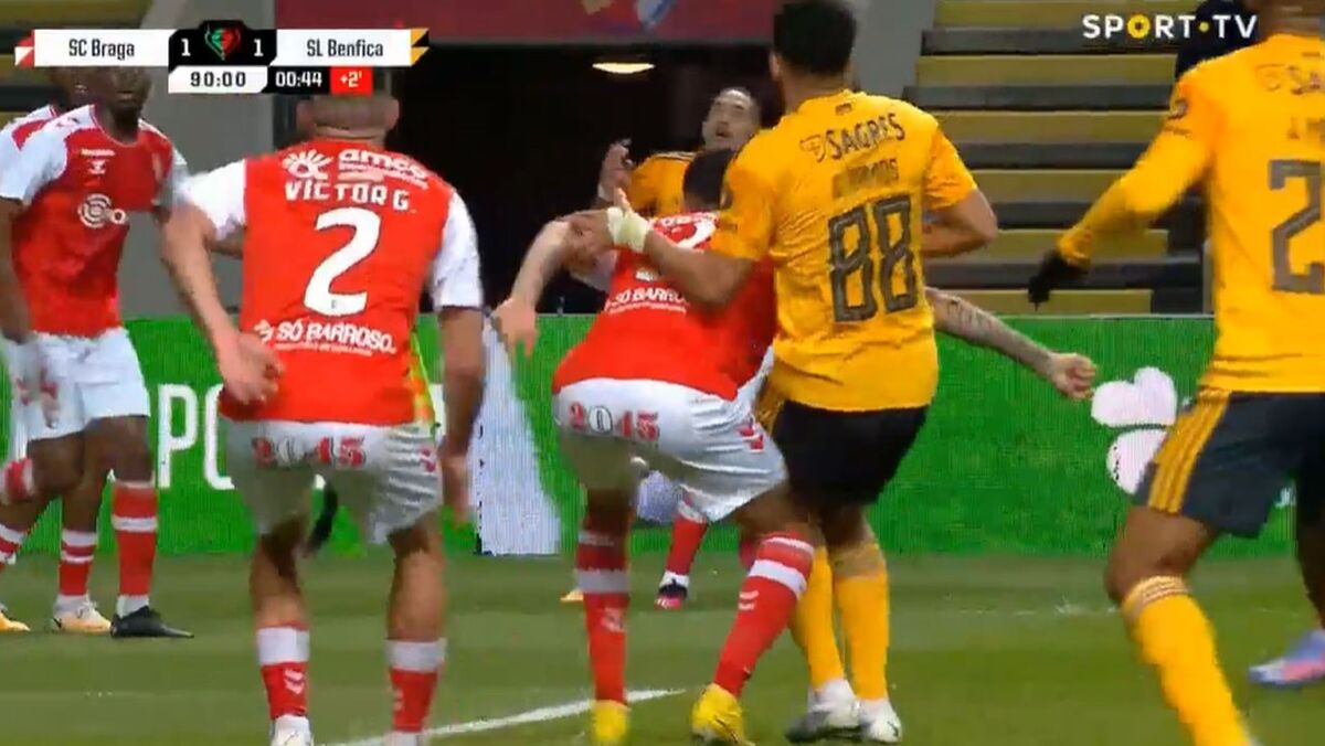 Aos 90'+1 do Sp. Braga-Benfica, os encarnados pediram penálti de Tormena sobre Gonçalo Ramos. O árbitro Tiago Martins mandou jogar.