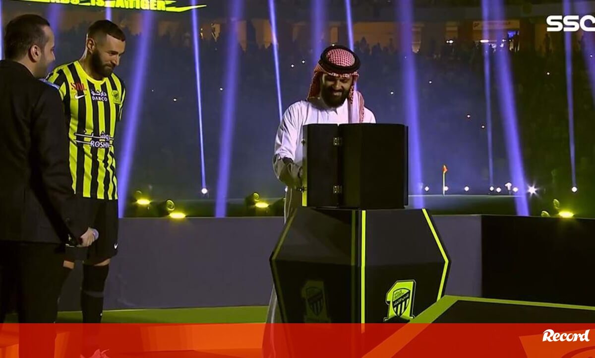 Karim Benzema fez uma surpresa aos adeptos do Al Itthiad, durante a sua apresentação como reforço da equipa de Nuno Espírito Santo, e levou o King Abdullah Sports City ao delírio. [Vídeo: SSC]