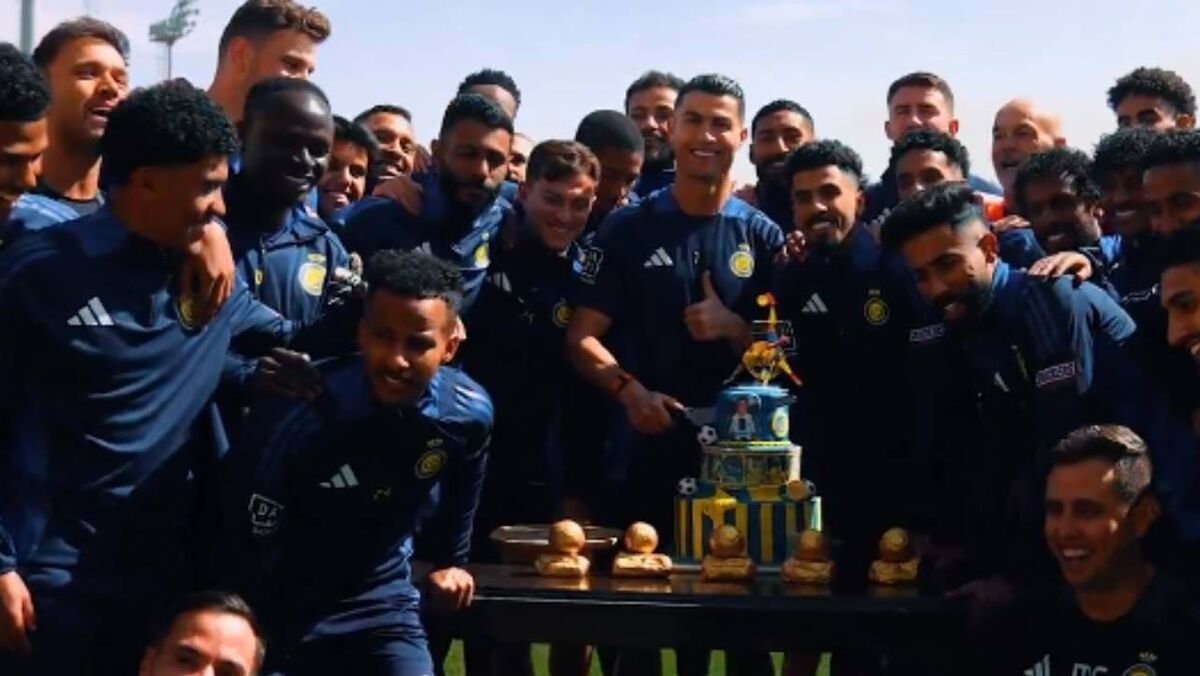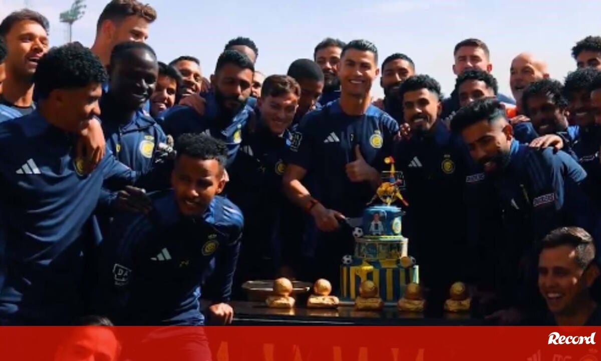 Bolo, aplausos e discurso: plantel do Al Nassr assinala aniversário de Ronaldo no treino