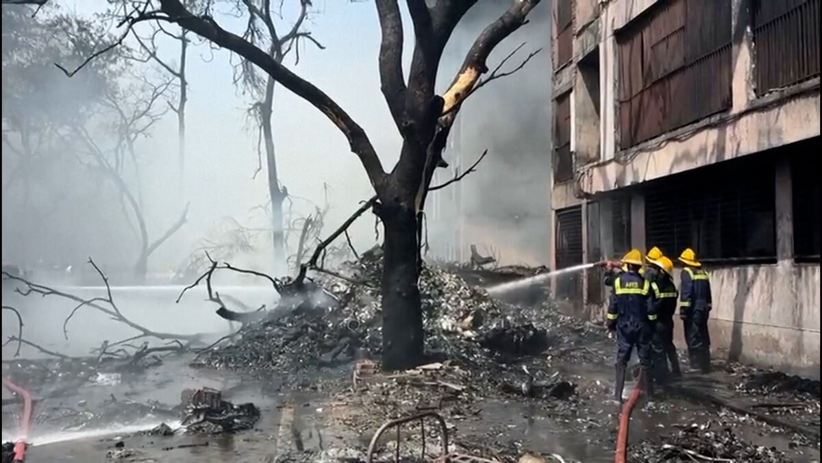 Bombeiros combatem incêndio após queda de avião com mais de 240 pessoas a bordo