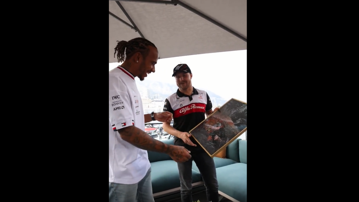 A um dia do arranque dos trabalhos em Monaco, Valtteri Bottas decidiu surpreender o ex-companheiro de equipa na Mercedes Lewis Hamilton entregando-lhe a fotografia em que aparece totalmente nu (e que tanto deu que falar nas redes sociais) ao piloto britânico. "Põe no teu apartamento, se quiseres", atirou, em tom de brincadeira, o finlandês que hoje corre pela Alfa Romeo. Lewis Hamilton riu e agradeceu o gesto. [Vídeo: Valtteri Bottas/Twitter]
