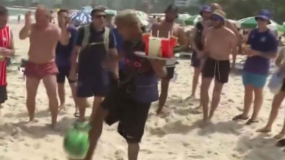 Brasil-Argentina começou na praia... e vendedor ambulante (com caipirinhas na mão) deu goleada