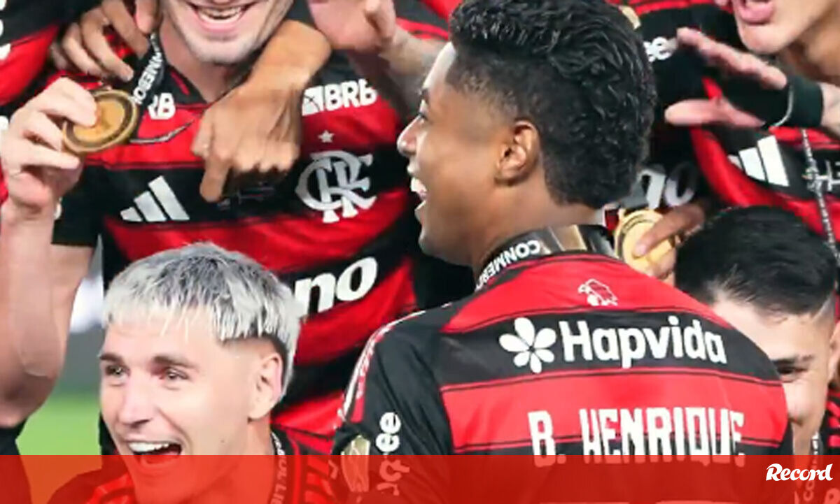 Bruno Henrique 'ganhou' microfone antes de levantar a Libertadores e ouviu-se... tudo: «Caraca!»