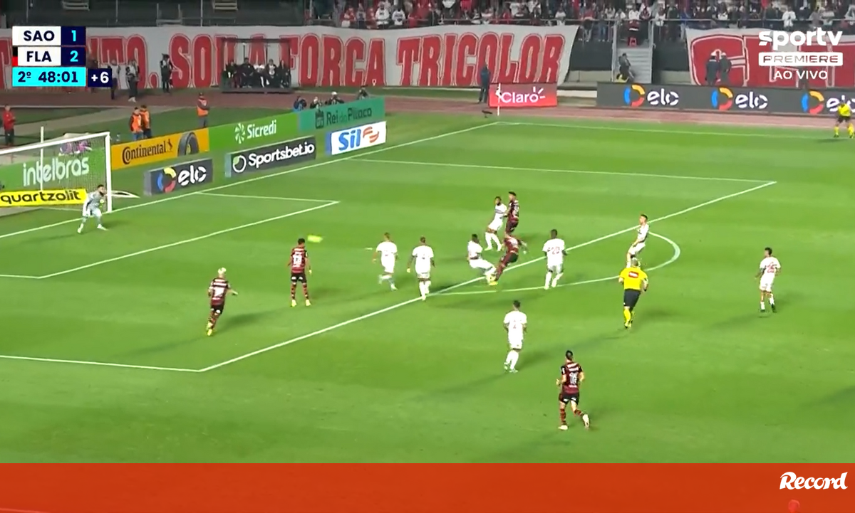 Everton, extremo brasileiro ex-Benfica, estreou-se a marcar pelo Flamengo na madrugada desta quinta-feira e logo com este golaço de fora da área, a fechar o triunfo do mengão (3-1) diante do São Paulo na 1.ª mão das 'meias' da Taça do Brasil. (Vídeo: SporTv)