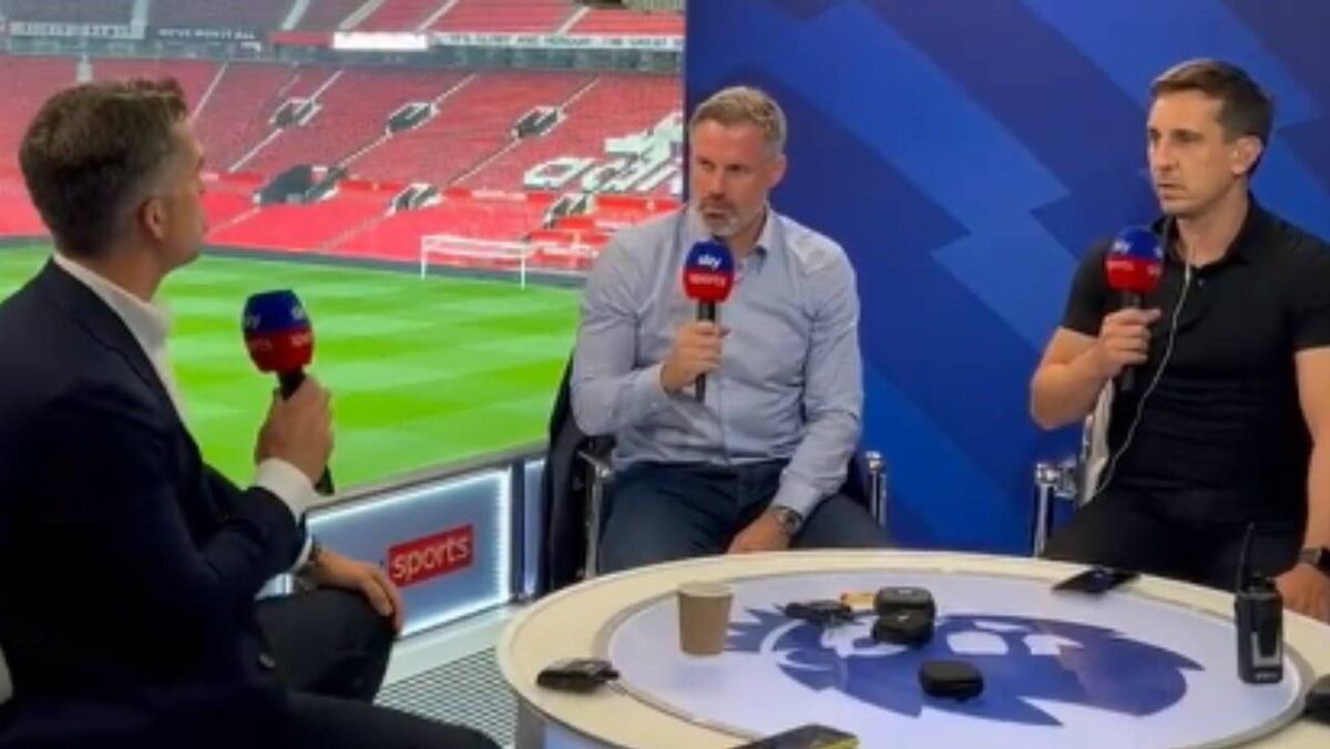 Jamie Carragher, antigo futebolista agora comentador da 'Sky Sports' afeto ao Liverpool, não tem dúvidas que os reds vão ganhar o jogo desta noite em Old Trafford. Diz que "este Manchester United é horrível" e prevê uma vitória "por seis ou sete". Garry Neville, antigo jogador dos red devils, responde mecanicamente, aludindo a um 'sketch' do comediante Conor Moore. (Vídeo Twitter/Gary Neville)