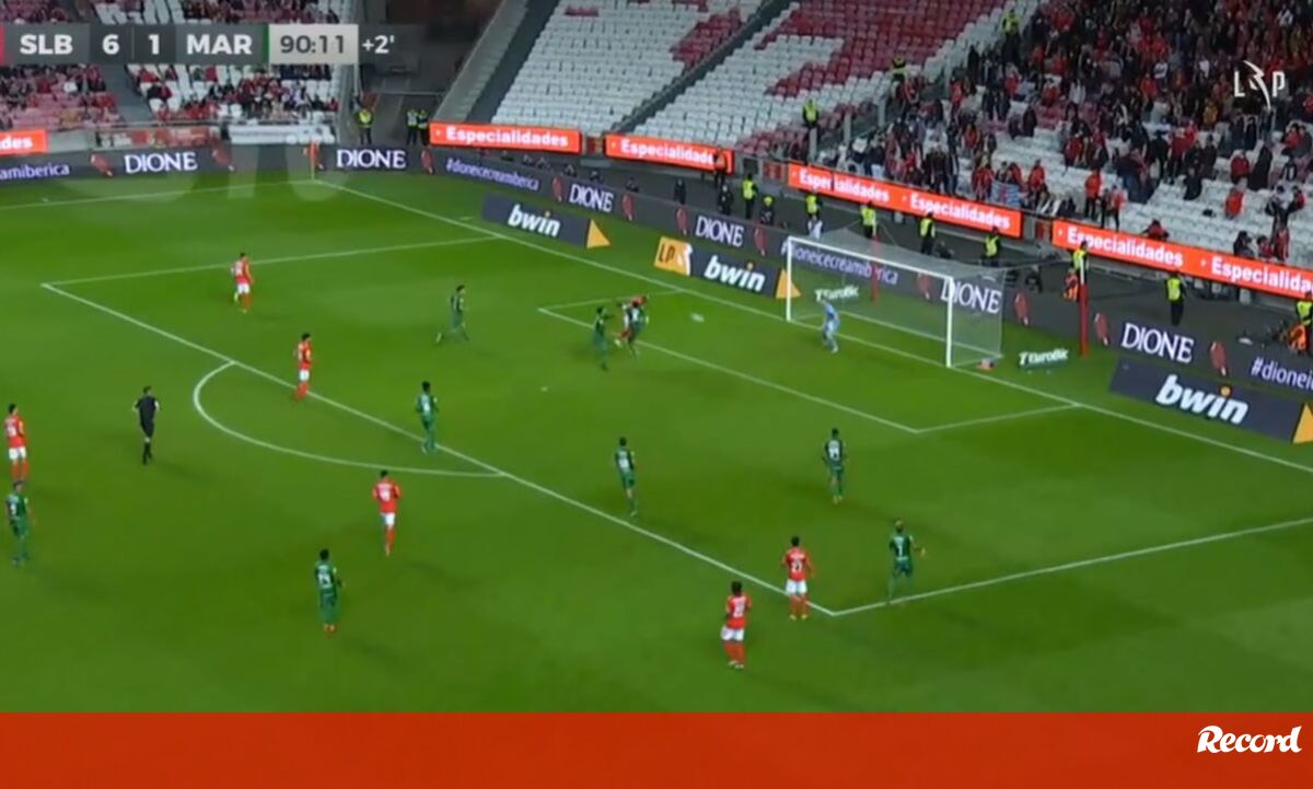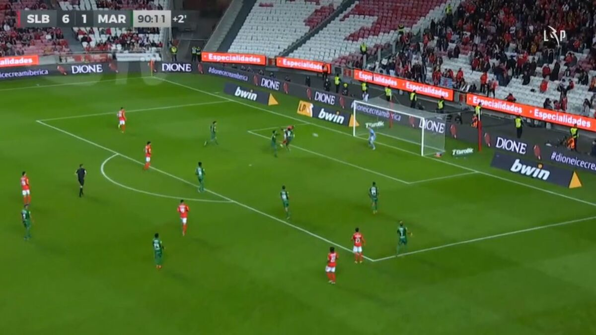 Aos 90'+1 do Benfica-Marítimo, Seferovic fez o 7-1 para as águias após nova assistência - a quarta no jogo - de Rafa.