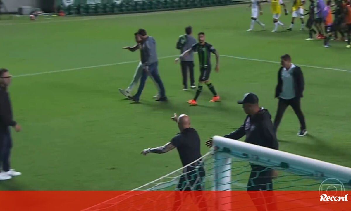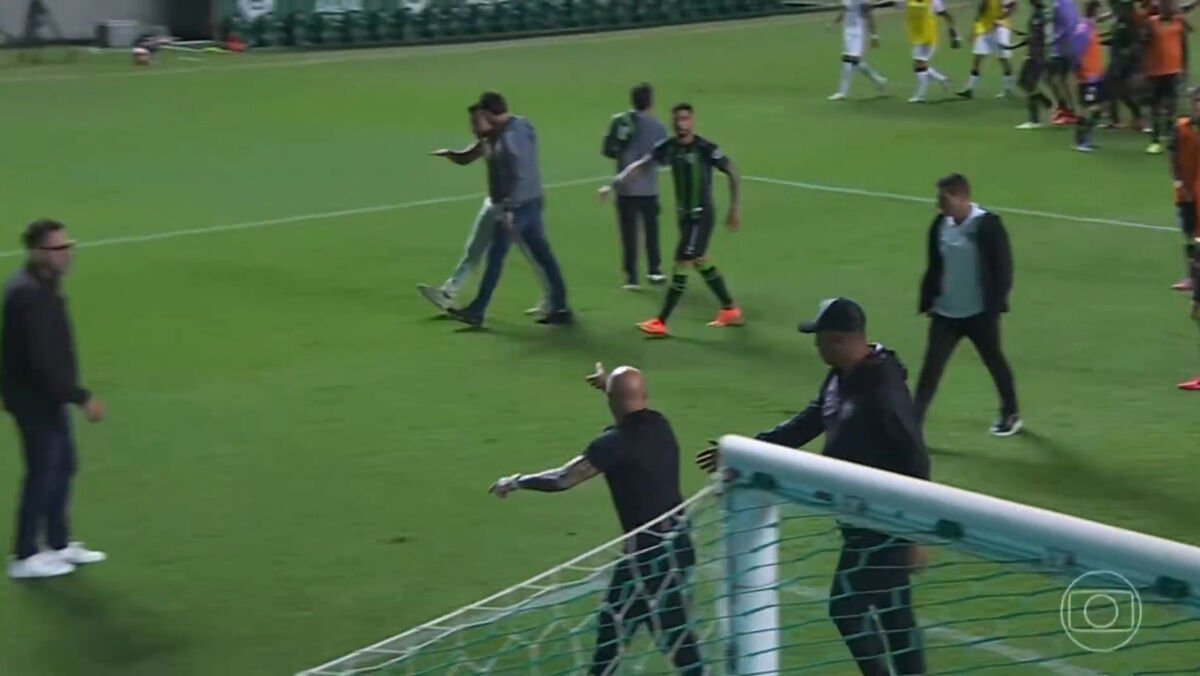 Jorge Sampaoli estava de cabeça perdida no final do América-Atlético Mineiro quando o treinador da equipa da casa, Alberto Valentim, o chamou de... 'baixinho'. O técnico argentino tentou mesmo aproximar-se do timoneiro adversário para chegar a vias de facto, mas foi impedido por, ao que tudo indica, um segurança que por ali andava e que andou ao seu lado durante toda a confusão. (Vídeo: Globo Esporte)