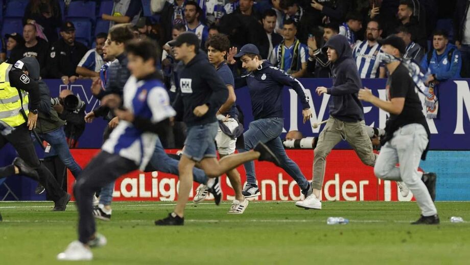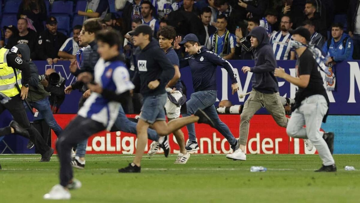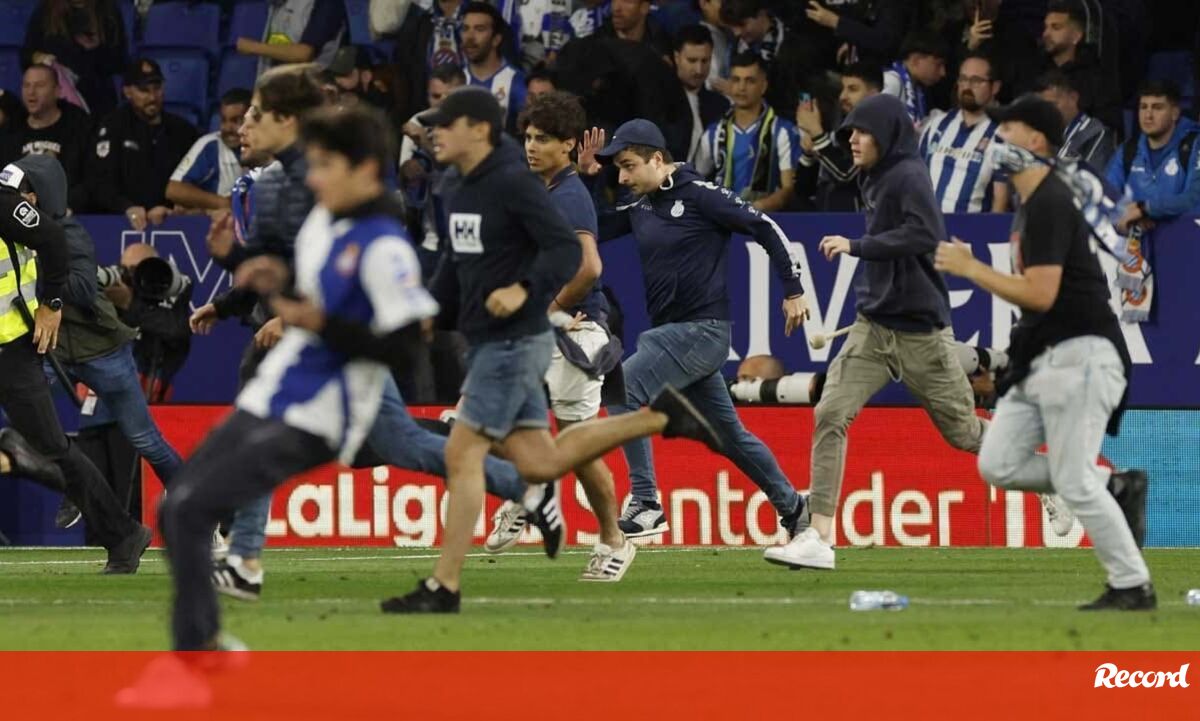 Caos no título: adeptos do Espanyol invadem relvado e jogadores do Barcelona fogem para o balneário