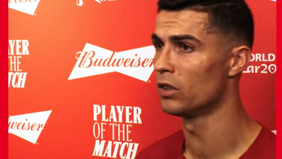 O capitão da Seleção Nacional foi solidário com exibições de colegas no momento de aceitar o prémio de homem do jogo. Cristiano Ronaldo garantiu que a distinção poderia ter sido oferecida a Danilo Pereira, João Félix ou Bruno Fernandes. [Imagens: Budweiser]