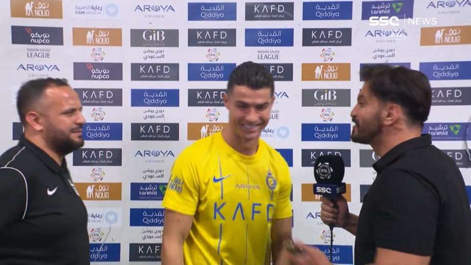 No dia em que se tornou no melhor marcador numa só edição da Liga saudita, Cristiano Ronaldo falou à SSC e protagonizou uma peculiar entrevista rápida. O craque do Al Nassr começou a responder em português, mas à segunda pergunta, sem querer, mudou para o inglês.