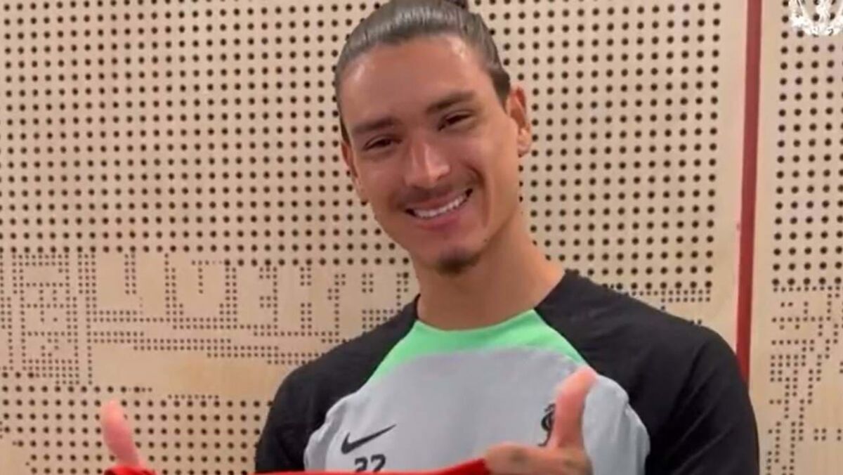 Darwin Nuñez vai passar a envergar o número 9 no Liverpool. O avançado uruguaio tem jogado com o 27 desde que se transferiu do Benfica, no ano passado, mas agora foi-lhe atribuído um número ícónico. "É uma felicidade tremenda envergar o 9", admitiu. (Vídeo Liverpool/Twitter)