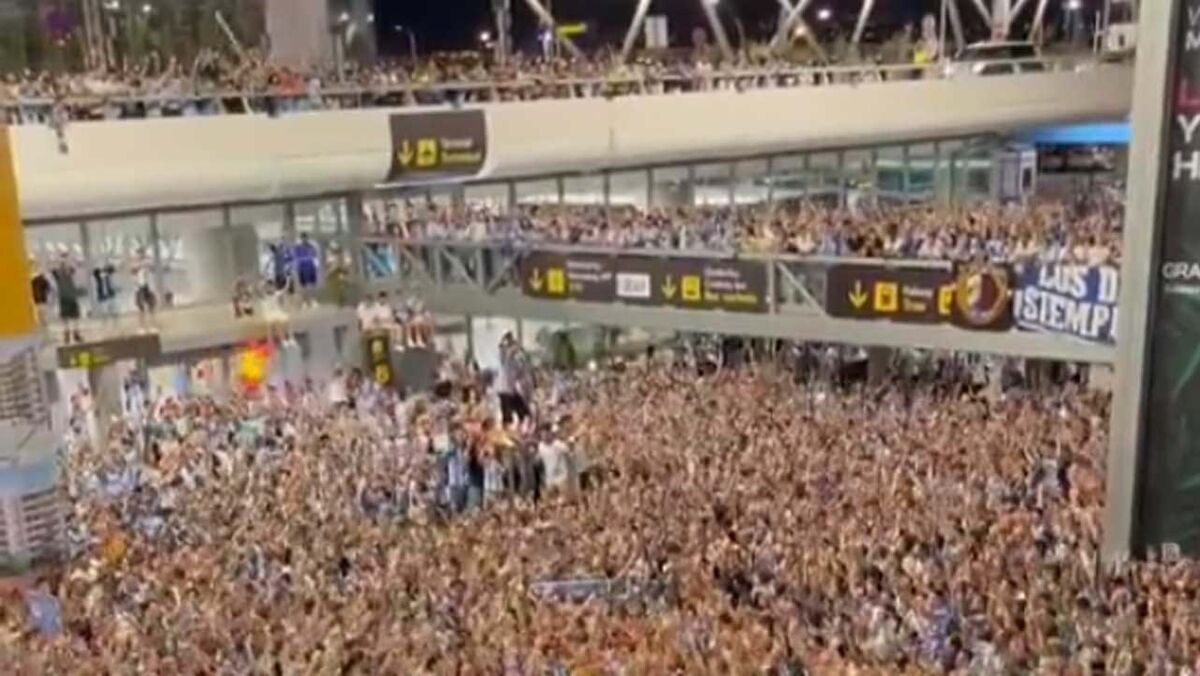Malaga recebido em festa por milhares de adeptos no aeroporto depois da subida de divisão