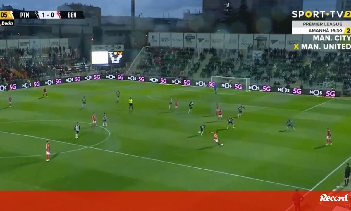 Um passe errado de Adel Taarabt deixou o Portimonense em posição previligiada para lançar o contra-ataque. Welinton foi mais rápido que a dupla Otamendi e Vertonghen e no frente a frente com Vlachodimos atirou colocado para o fundo das redes da baliza encarnada. [Vídeo: VSports]