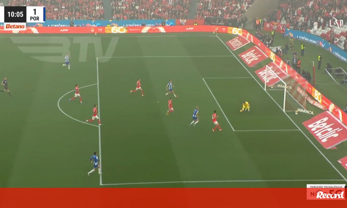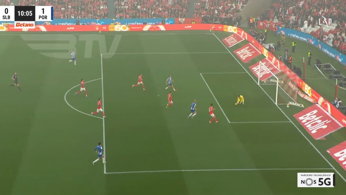 Aos 10' do Benfica-FC Porto, Froholdt fez o 0-1 para os dragões. Uma arrancada do dinamarquês após grande passe de Alan Varela, com Trubin a defender para a frente o primeiro remate do nórdico, que à segunda atirou por debaixo das pernas do guarda-redes encarnado.