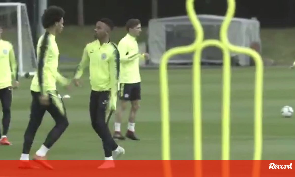 Gabriel Jesus, avançado do Manchester City, é o espelho da boa disposição dos citizens que assumiram ontem a liderança da Premier League. O brasileiro está na brincadeira com Leroy Sané e Otamendi procura acabar com o 'baile'.