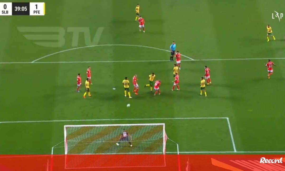 Golo do Paços: grande remate de Antunes, desvio de Koffi e Benfica a pedir fora de jogo