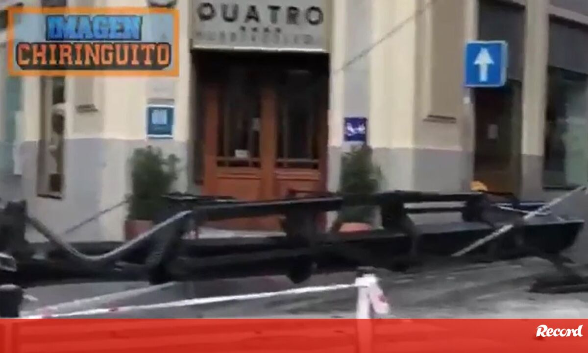Grua cai mesmo à frente do hotel do Manchester United: Bruno Fernandes até foi à varanda espreitar