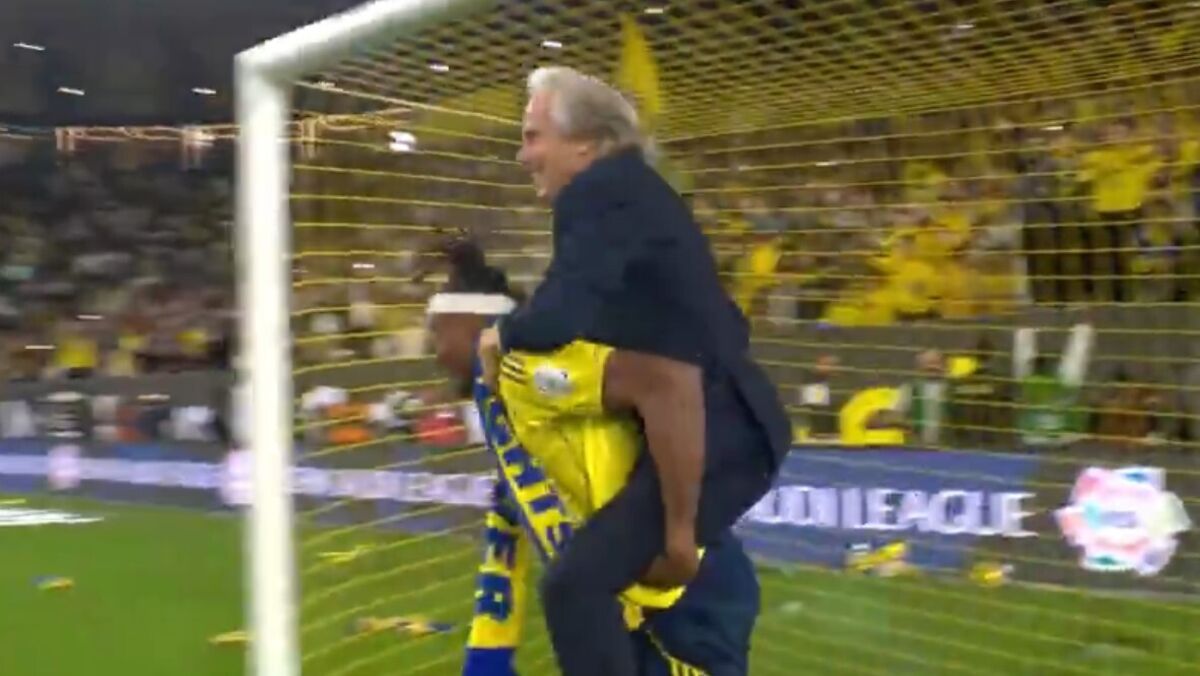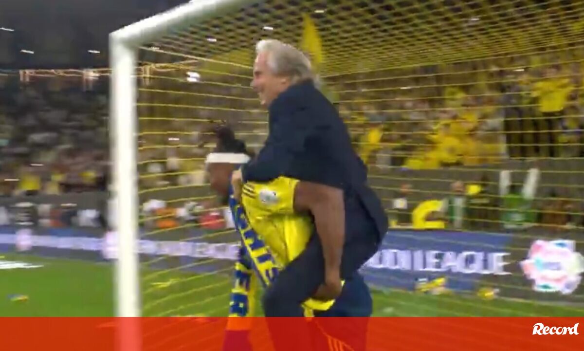 Hilariante: Al Nassr vence nos descontos e Jorge Jesus celebra às cavalitas do herói do jogo