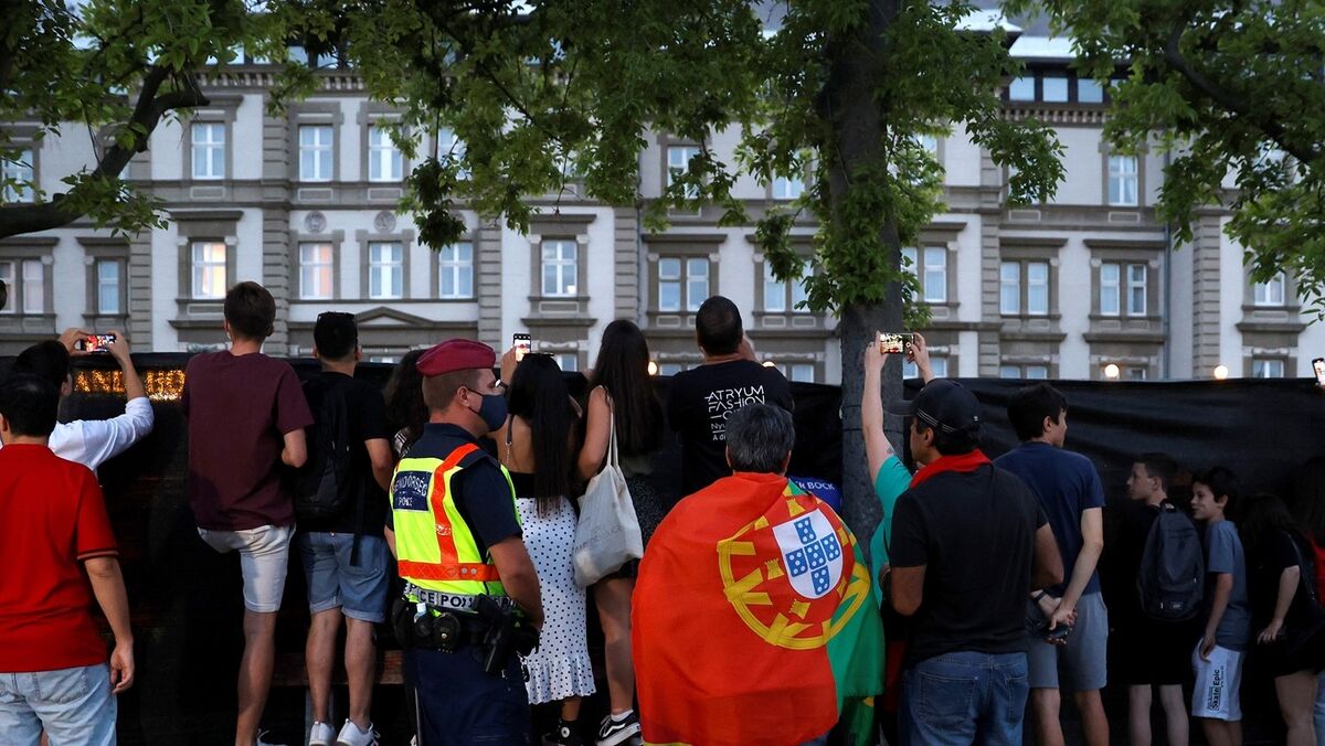 A seleção portuguesa de futebol chegou esta quinta-feira ao quartel general em Budapeste sob o apoio de meia centena de adeptos, que não perderam a oportunidade de incentivar os campeões europeus para a caminhada no Euro'2020. Equipados a rigor, fosse com as cores lusas ou do FC Porto, os fãs nacionais estavam prontos para dar as boas-vindas à 'equipa das quinas', perante o olhar atento de alguns locais que se exercitavam, enquanto tentavam perceber qual o motivo de tanto alvoroço. Entre cânticos de Portugal, os adeptos não deixaram de entoar o hino nacional e ainda a música que ficou célebre no Euro'2016...