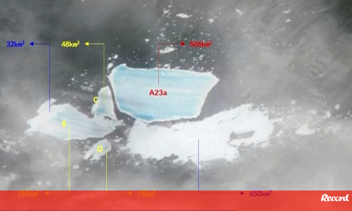 O iceberg A23a, que agora cobre uma área de 503 quilómetros quadrados, encolheu para menos de um oitavo do seu tamanho original - uma redução dramática em relação a algumas semanas, quando se estimava que ele medisse 948 quilómetros quadrados.