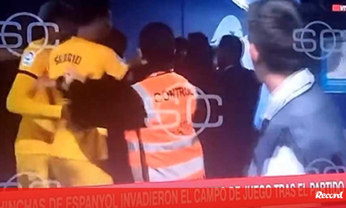 Imagens gravadas no túnel: Busquets tentou enfrentar os ultras do Espanyol