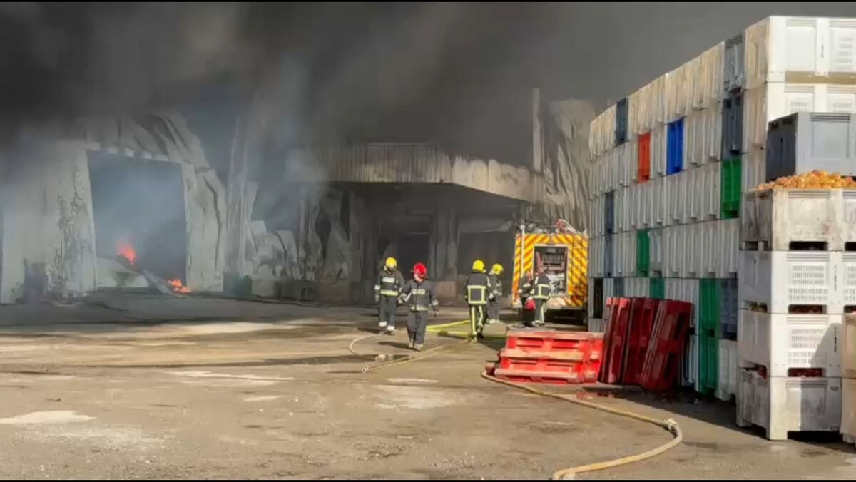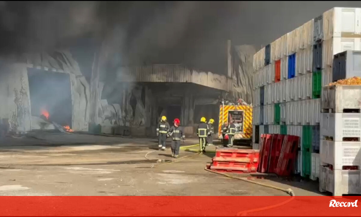 Imagens mostram bombeiros durante o combate às chamas num armazém de frutas em Óbidos
