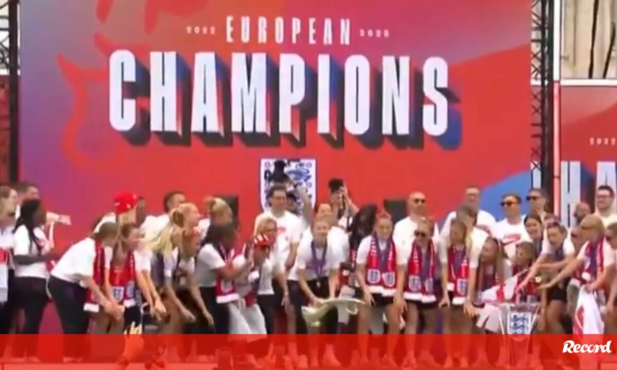 A seleção inglesa celebrou esta terça-feira a conquista do Europeu feminino perante milhares de adeptos que se juntaram à festa em frente ao Buckingham Palace, numa das avenidas mais conhecidas de Londres [Vídeo: Lionesses/X].