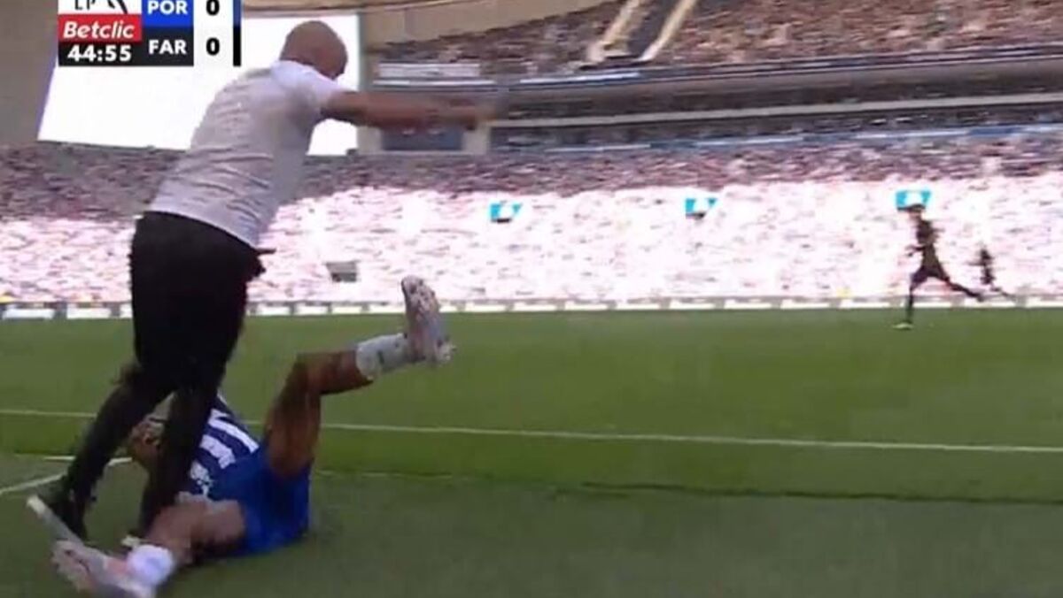 Aos 45' do FC Porto-Farense, Galeno foi derrubado por Artur Jorge e, na queda, o extremo portista, já fora das quatro linhas, acabou por, inadvertidamente, rasteirar... José Mota, que também foi ao chão. O defesa algarvio viu amarelo e o extremo ficou em claras dificuldades.