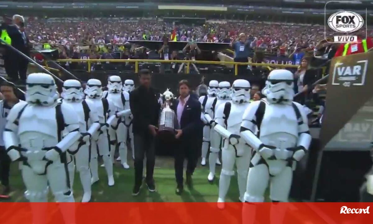 Personagens da Star Wars transportaram o troféu até ao relvado do Estádio Monumental, em Lima