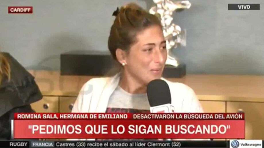 Pouco depois de as autoridades darem por terminadas as buscas para encontrar o avião onde viajava o futebolista argentino Emiliano Sala - que desapareceu no canal da Mancha na segunda-feira -, Romina Sala, a irmã do jogador contratado pelo Cardiff, veio implorar para que as mesmas prossigam.