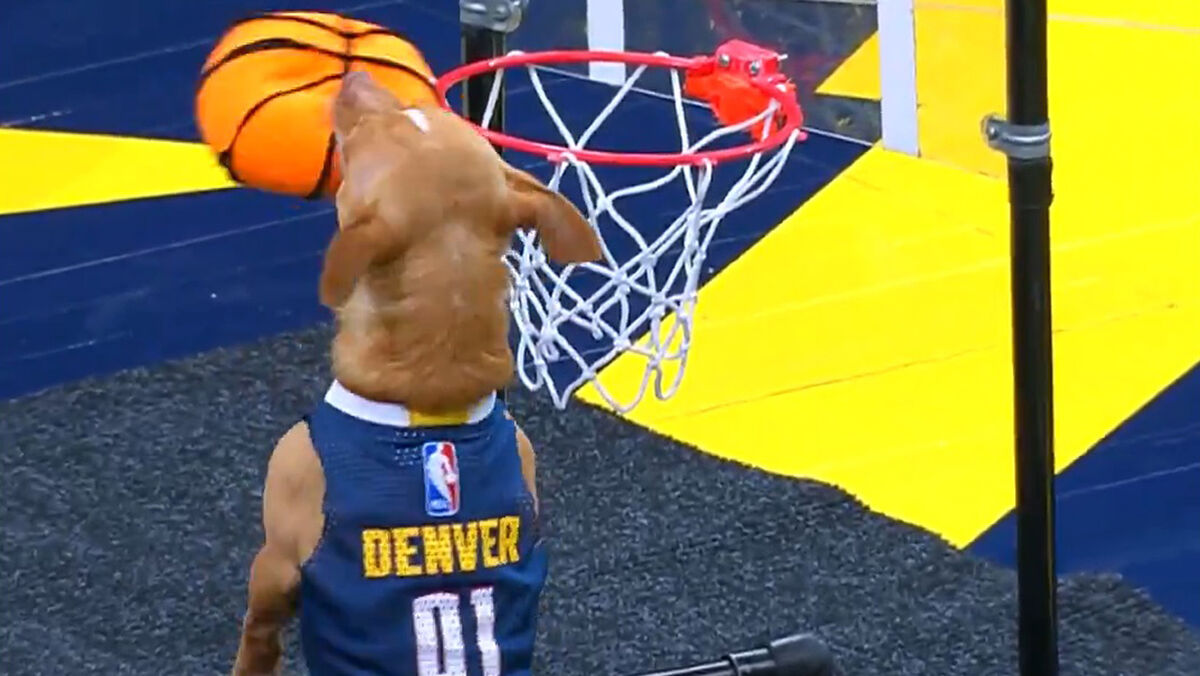Já viu um cão a fazer um afundanço? Aconteceu ao intervalo de um jogo da NBA