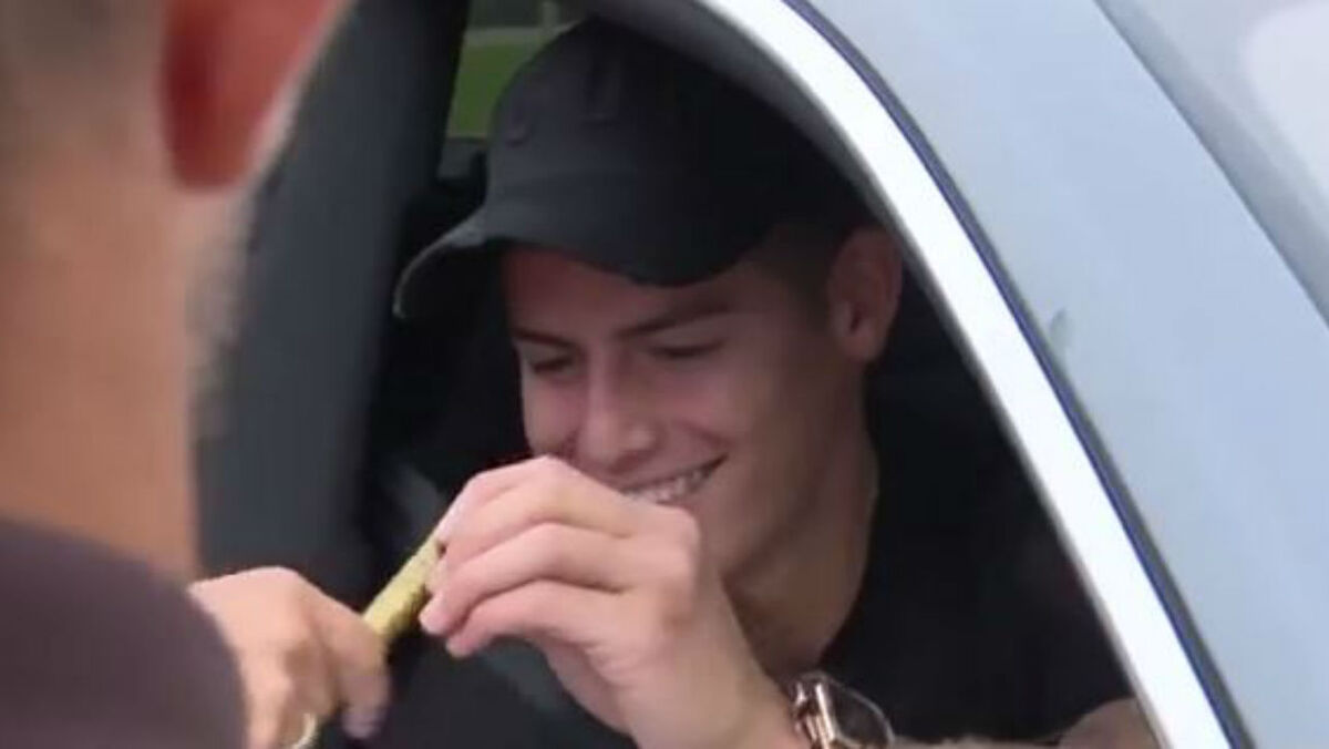 James Rodríguez está feliz no Real adrid. O colombiano foi abordado pelos adeptos na chegada a Valdebebas na segunda-feira e, apesar das poucas palavras, deu autógrafos, tirou fotos e mostrou o sorriso... até quando lhe falaram da pontuação no FIFA 20: "deram-te nota 55...", afirmou um fã. [Vídeo: AS]