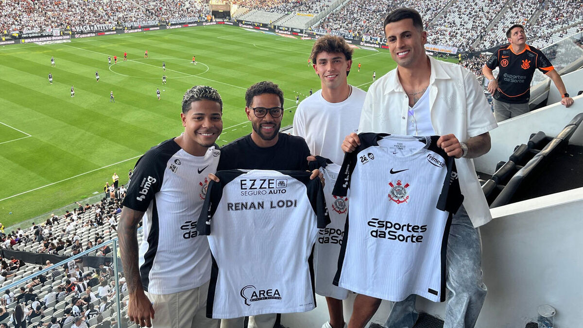 João Cancelo e João Félix foram ver o Corinthians-Botafogo no Brasil, jogo a contar para a 36.ª jornada do Brasileirão e que terminou empatado (2-2), aproveitando a pausa no campeonato saudita. Na companhia de Wesley, colega de João Félix no Al Nassr que já representou o clube paulista, e de Renan Lodi, companheiro de equipa de João Cancelo no Al Hilal, os internacionais portugueses receram camisolas [Vídeo: Corinthians].