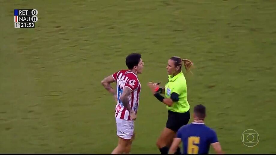 Jogador do Náutico vê cartão vermelho e tenta agredir árbitra