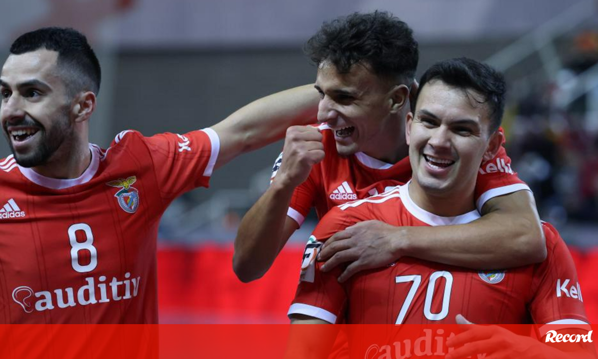 Jogadores do Benfica festejam com adeptos conquista da Taça da Liga de futsal