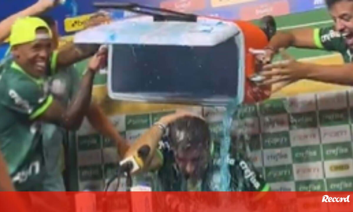 Jogadores do Palmeiras dão banho de gelo a Abel Ferreira na sala de imprensa: «Amo estes caras»