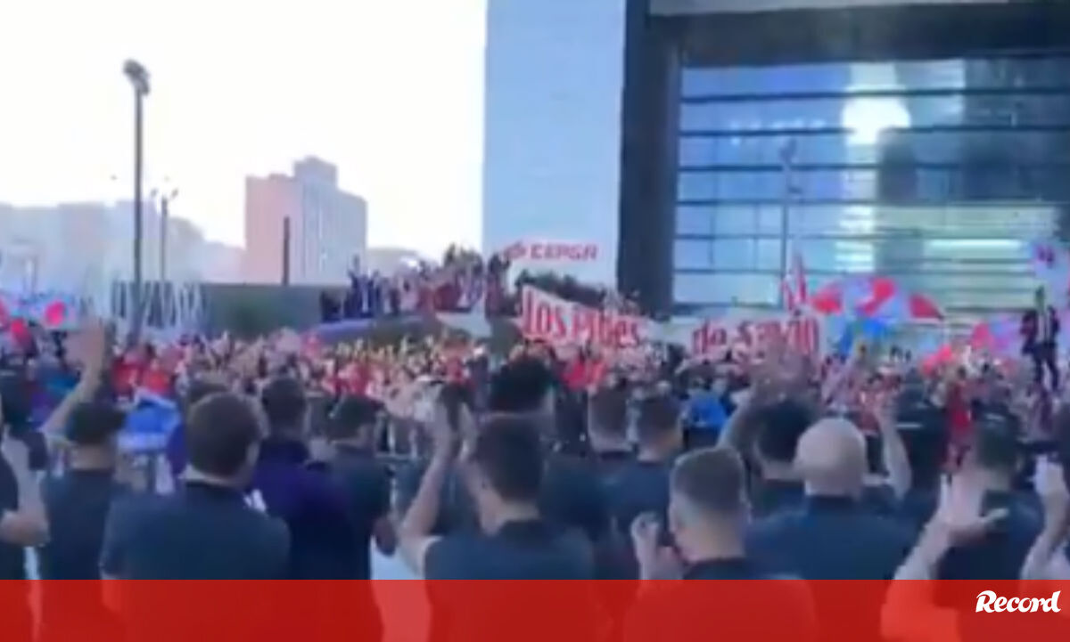 Os adeptos do River Plate posicionaram-se este domingo em frente do hotel onde a equipa está alojada, em Madrid, e fizeram a festa, com cânticos e muita animação. Os jogadores saíram a dada altura da unidade hoteleira e aplaudiram os seus 'hinchas'. River e Boca Juniors disputam hoje a segunda mão da final da Taça Libertadores, no Santiago Bernabéu. (Vídeo River Plate)