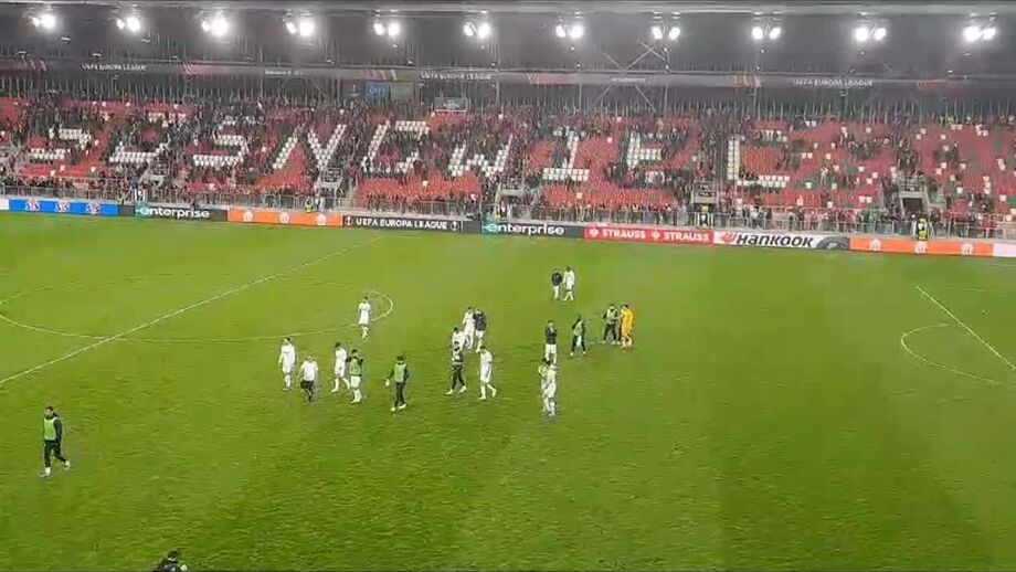 Após o apito final no Raków-Sporting, os jogadores dos leões aproximaram-se da bancada onde estavam os seus adeptos e saudaram-nos pelo apoio demonstrado esta noite.