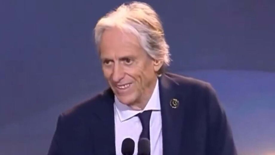 Jorge Jesus foi esta sexta-feira, na cerimónia dos Globe Soccer Awards, distinguido com o prémio de melhor treinador do Médio Oriente, e quando foi chamado ao palco para discursar começou por arriscar... no inglês. "Peço desculpa, não sei falar muito bem. Prefiro fazê-lo em português...", atirou o técnico, antes de dar os parabéns a todos os nomeados e de sublinhar as 34 vitórias consecutivas que conseguiu, recentemente, no comando do Al Hilal. (Vídeo: X)