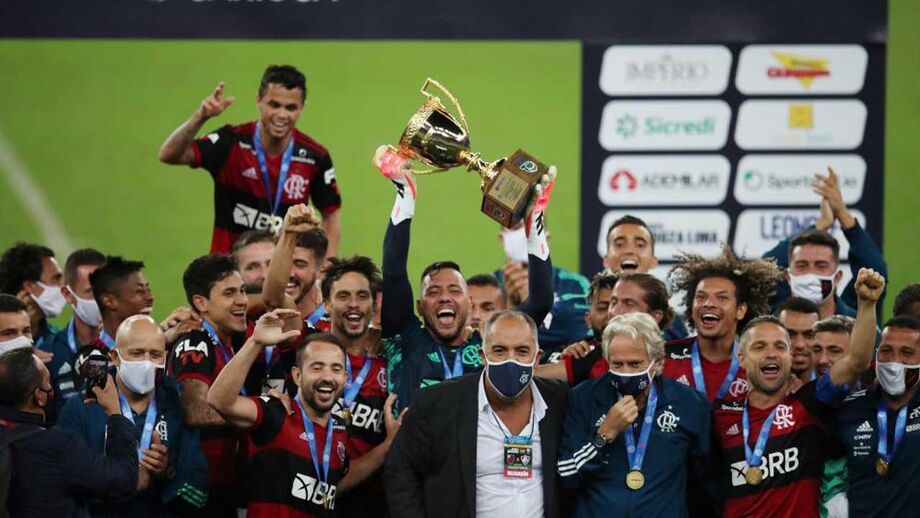 No momento de levantar a taça do Estadual Carioca, os jogadores do Flamengo repararam que Jorge Jesus estava numa zona mais periférica do festejos e foram buscar o treinador para a festa, atirando-o ao ar.