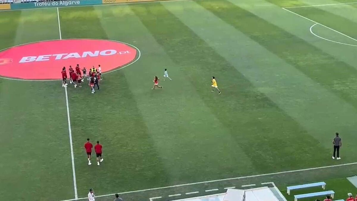 Jovens invadem relvado antes do aquecimento para tirarem fotografias com jogadores do Benfica
