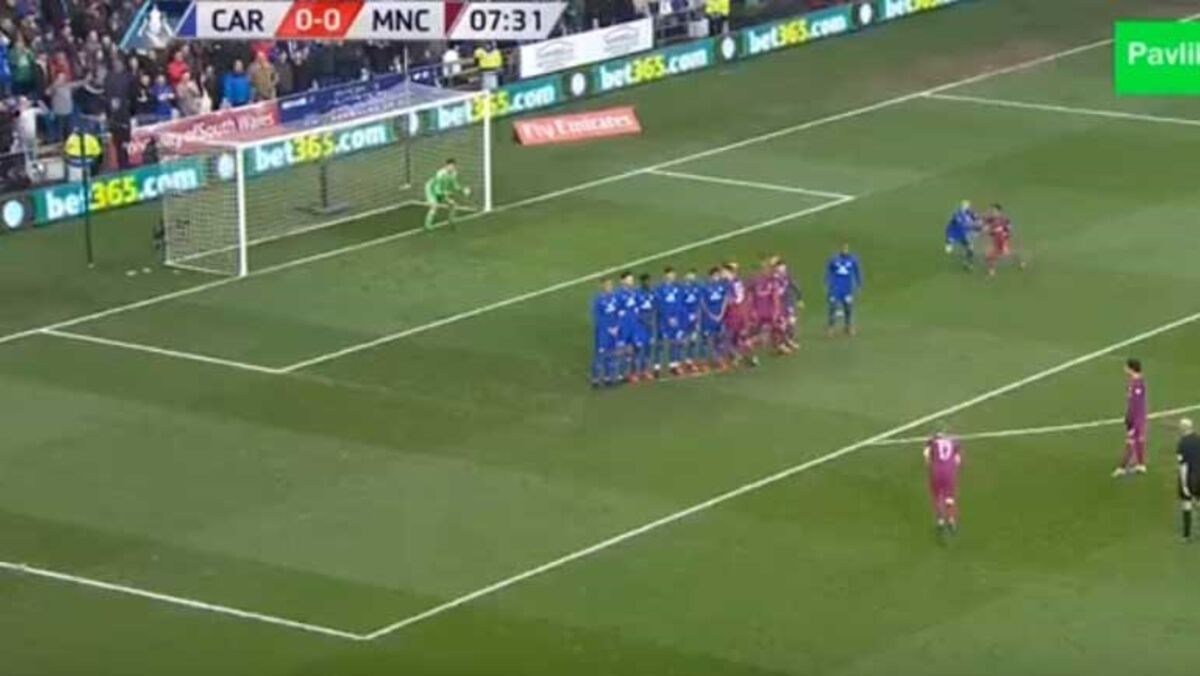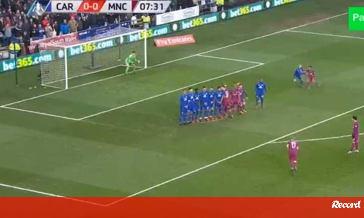 Kevin de Bruyne abriu o marcador na vitória do Manchester City sobre o Cardiff, na Taça de Inglaterra, com um livre que ficou celebrizado por Ronaldinho Gaúcho
