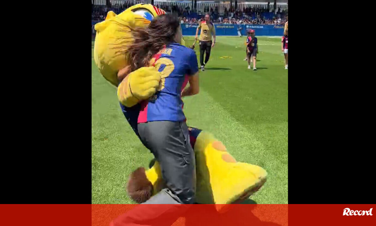 A equipa feminina do Barcelona levantou este domingo o troféu da Liga espanhola depois da goleada sobre o Athletic Bilbao (6-0), a contar para a última jornada do campeonato - as blaugrana, recorde-se, já se tinham sagrado campeãs no último fim de semana. Na hora de festejar, Kika Nazareth, que ainda está a recuperar de lesão, protagonizou um momento divertido com a mascote do Barcelona.