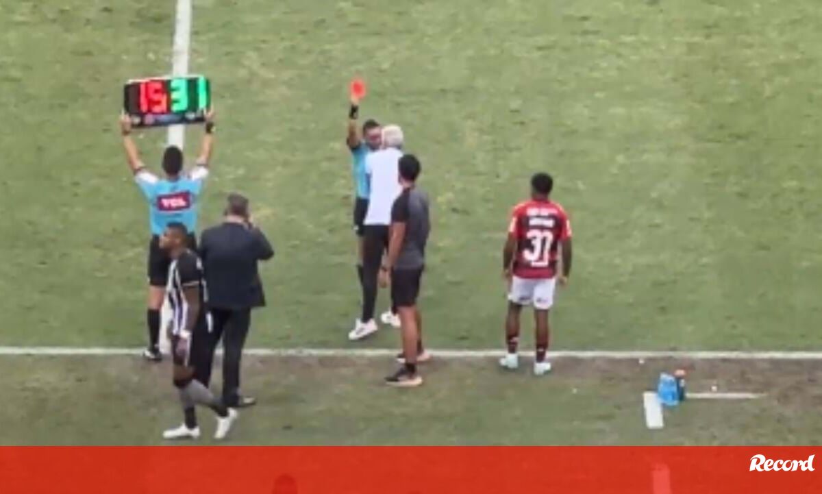 Luís Castro discutiu com a árbitra do jogo em que o Botafogo ganhou ao Flamengo, no Brasileirão, e começou por ver um cartão amarelo. Mas o treinador português continuou e a juiza mostrou-lhe depois o vermelho. Veja as imagens. (Vídeo TNT Sports Brasil)