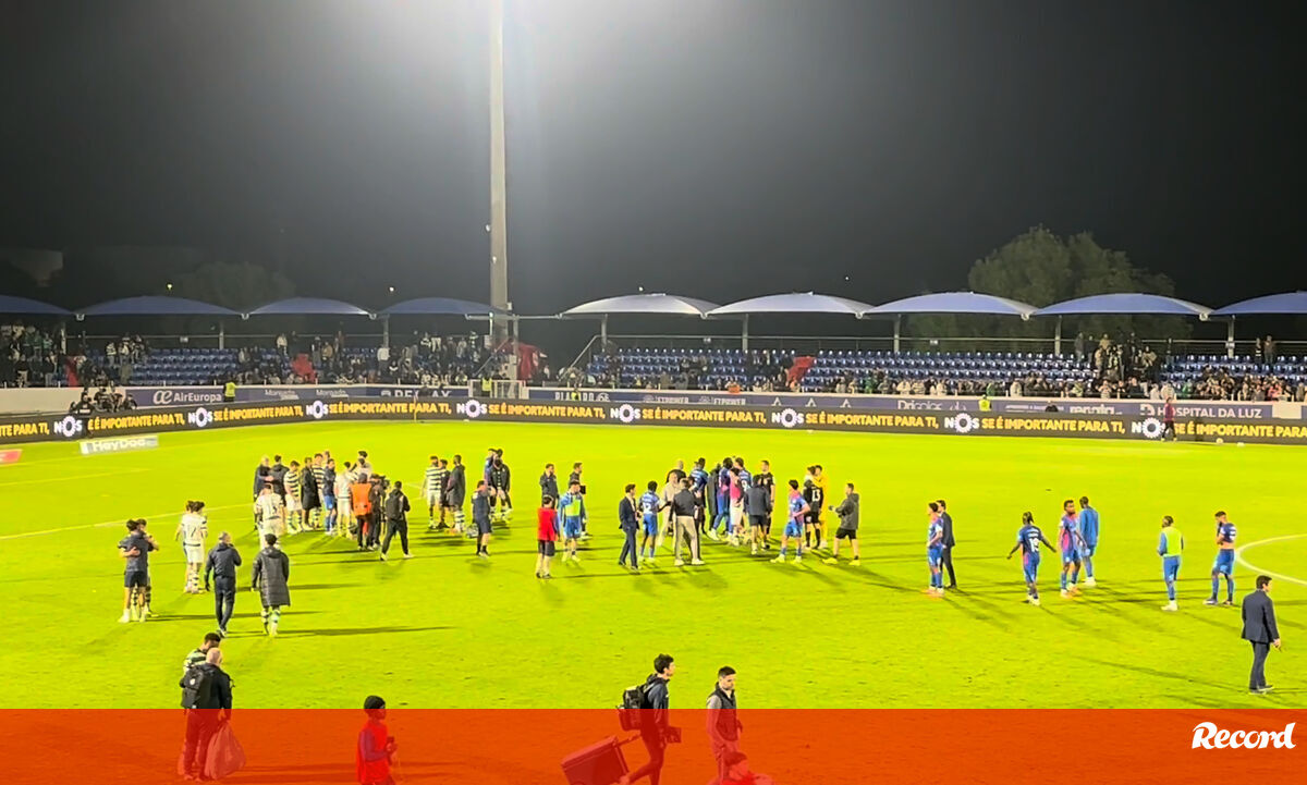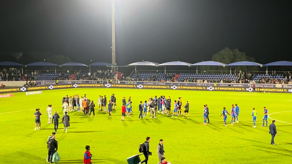 Luis Suárez e João Pinheiro à conversa no final do Alverca-Sporting