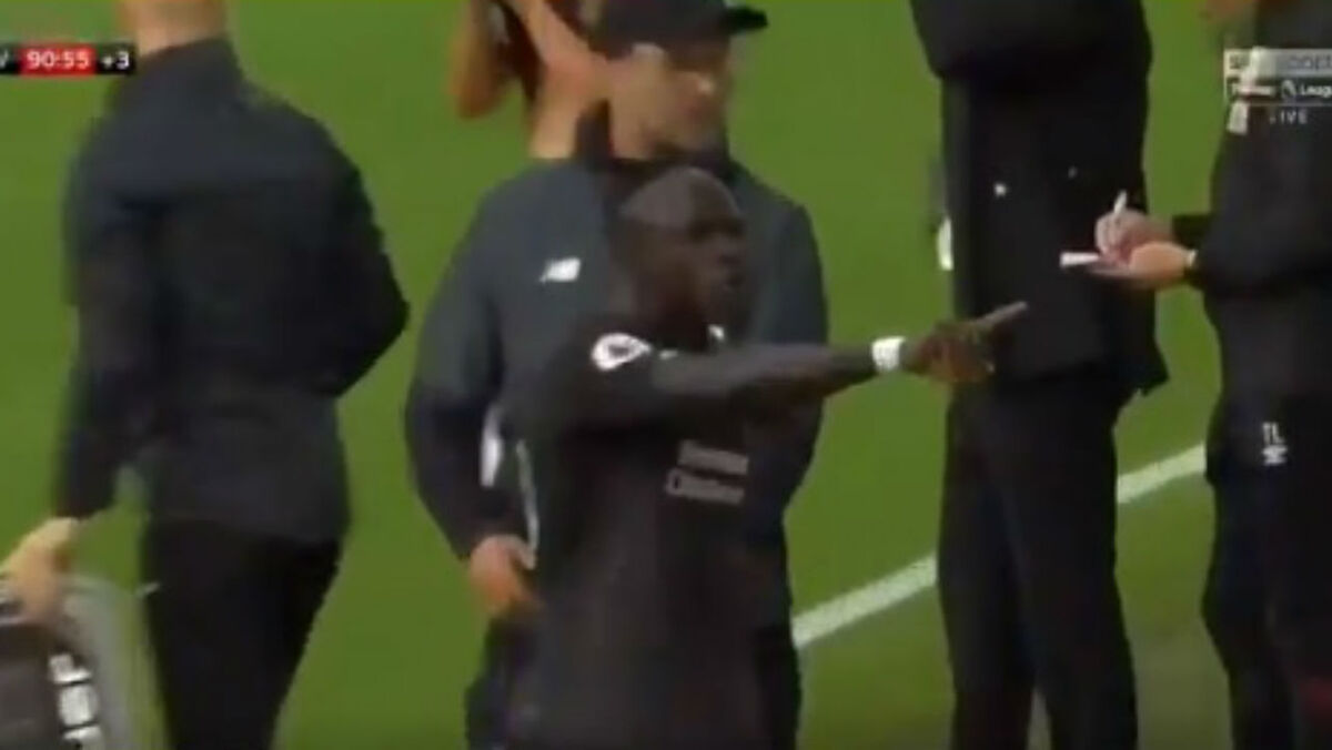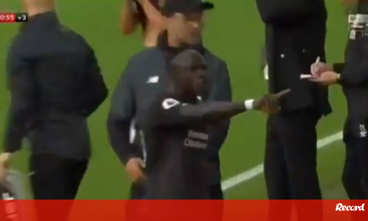 Mané em fúria no banco do Liverpool após Salah não lhe ter passado a bola