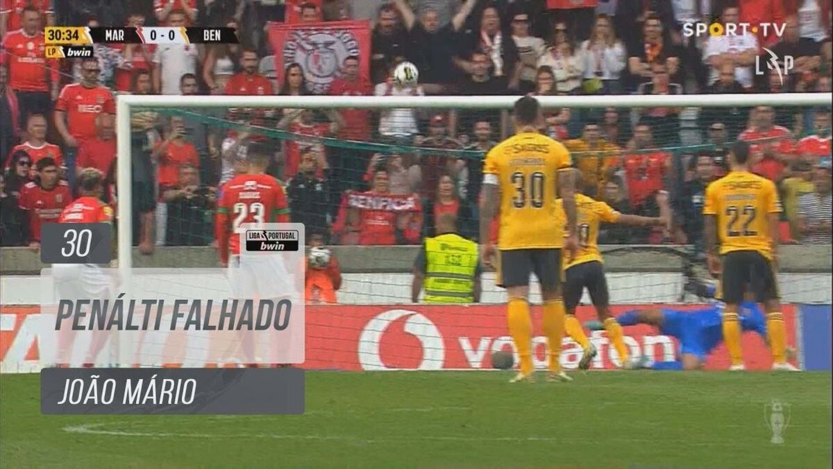 Marítimo-Benfica: João Mário atira para as bancadas e falha o segundo penálti esta época