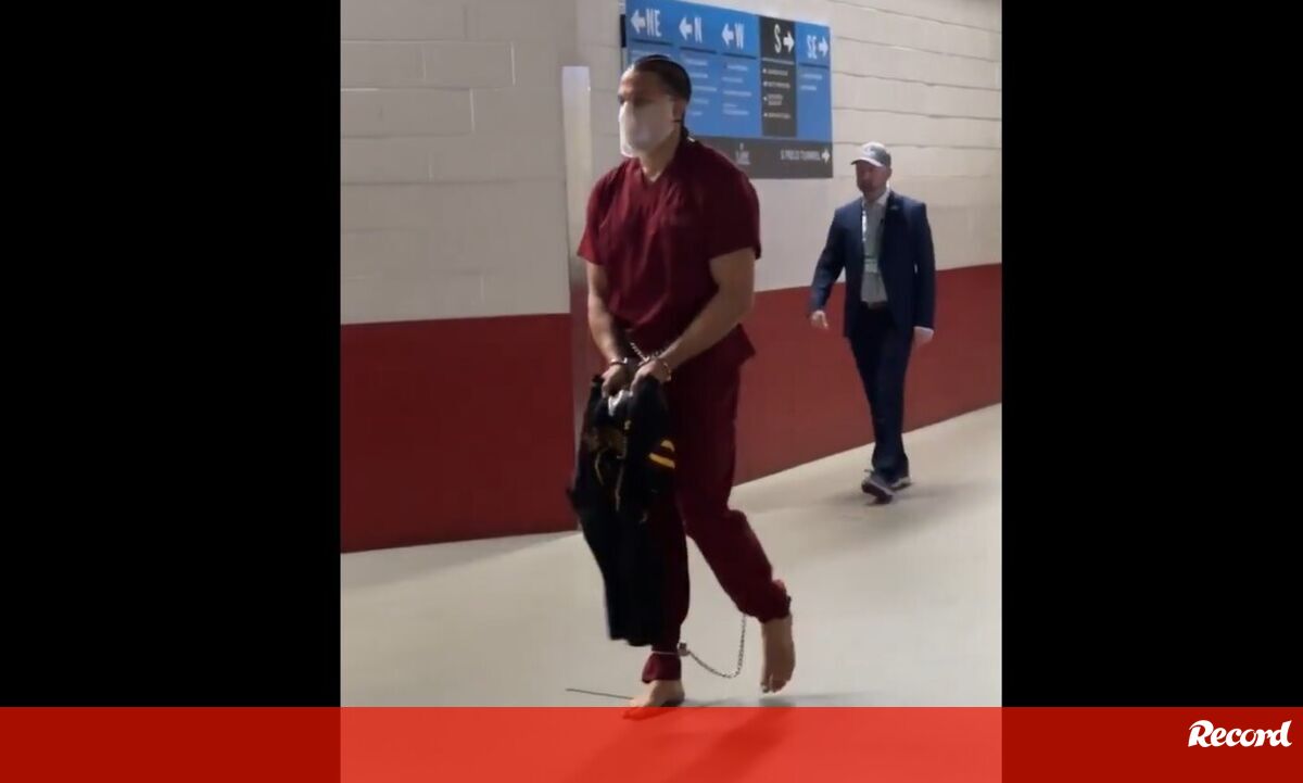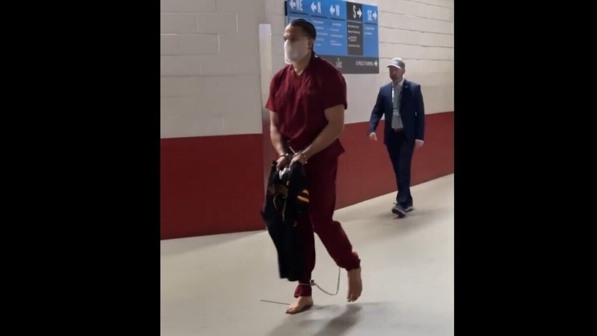 Mark Hollins em protesto contra Trump: craque dos Patriots chegou ao Super Bowl... acorrentado e algemado