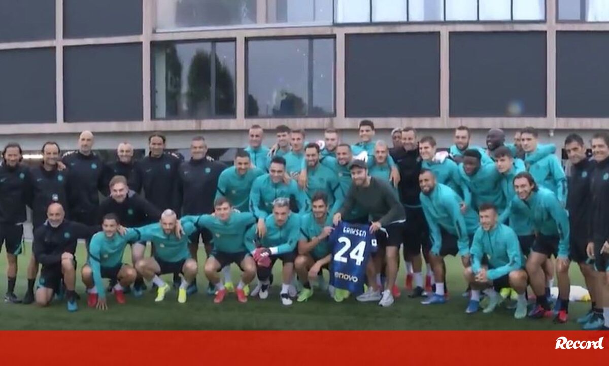 Christian Eriksen regressou esta quarta-feira ao centro de treinos do Inter, onde esteve com o plantel dos nerazzurri e com a equipa técnica liderada por Simone Inzaghi. O médio dinamarquês 'distribuiu' abraços e tirou ainda algumas fotografias com o emblema de Milão, tendo recebido ainda uma miniatura do troféu da Serie A, que o Inter venceu em maio último. [Vídeo: Inter]