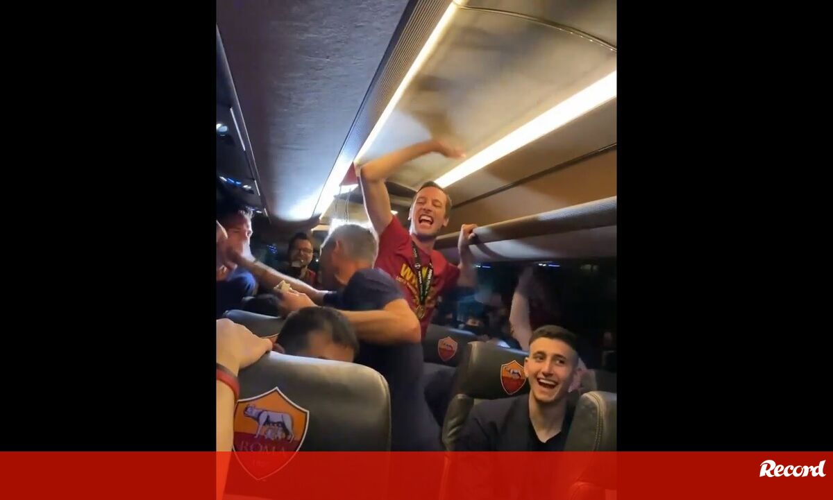 Nem Mourinho resistiu a mostrar: autocarro da Roma em festa após título da Conference League